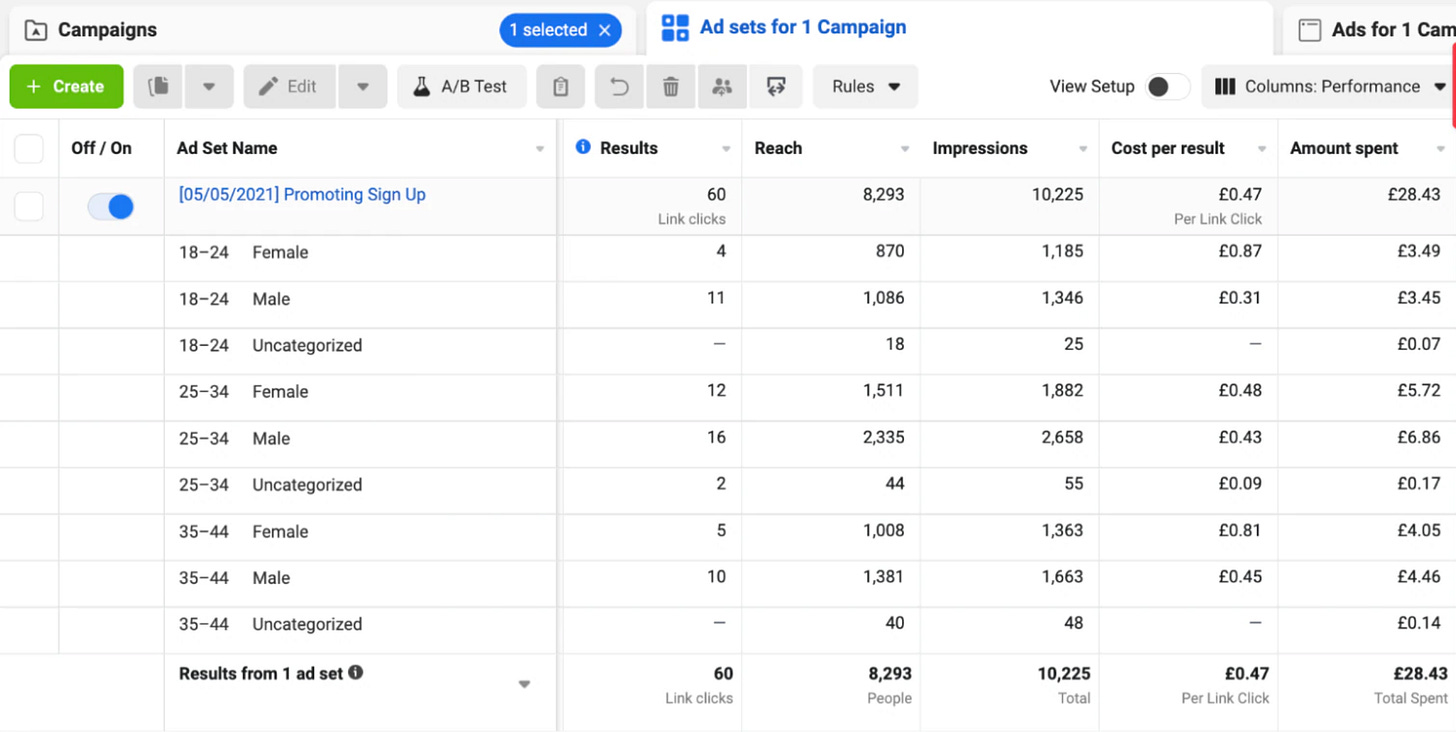Breakdowns to use: Placement, Age, Gender, Region (if relevant), and Audience / Ad set